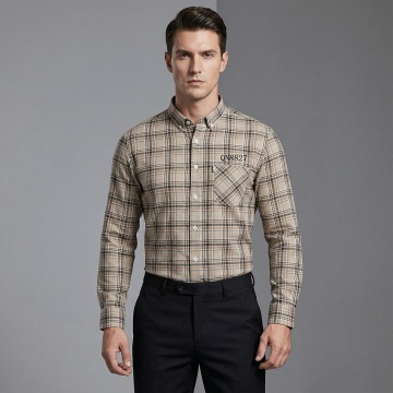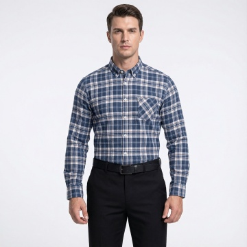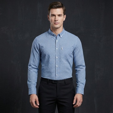 帮我生成一张穿着这件衬衫的全身模特图,模特是身材好的欧美白人男性,下半身穿黑色西装裤,展示衬衫的正面