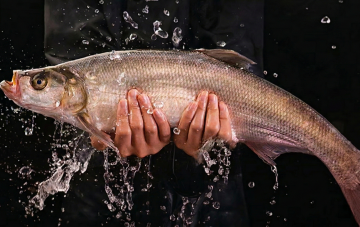 一条新鲜的三文鱼,身体呈流线型,背部为深蓝色,腹部银白色,鱼鳍和鱼尾边缘带有橙红色,鱼鳞细密有光泽,鱼头微微抬起,嘴巴自然闭合,眼睛明亮,整体姿态鲜活,悬浮在纯白色的纯色背景上,保持与原图相同的悬浮状态和构图布局,光线从上方照射,鱼身有明显的光影对比,突出鱼肉的质感和立体感。