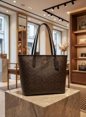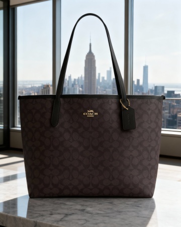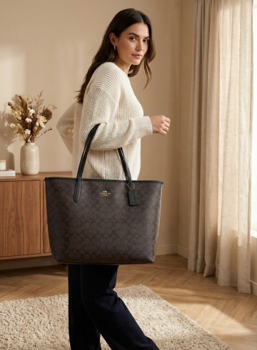 现代感皮质托特包,简约主义设计,光影交错凸显质感,商务与优雅并存,重拟物风实景呈现,时尚大气。