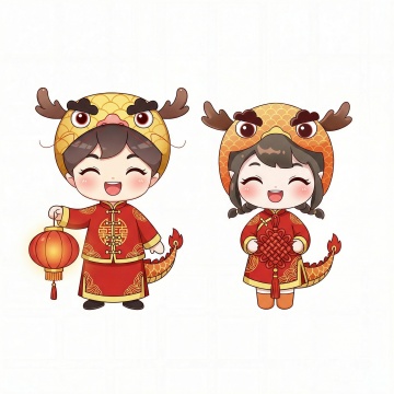 梦幻古典插画风,中式情侣拟人化,七夕节浪漫氛围。