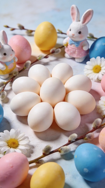 复活节彩蛋,五个鸡蛋,鸡蛋表面洁净无装饰,复活节元素,清新唯美,复活节氛围浓厚,艺术实拍,草地