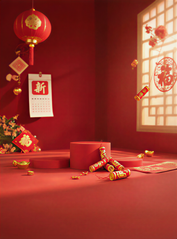 国潮风融合重拟物与鎏金元素,剪纸风格梅花枝点缀,中式古典氛围浓厚,喜庆红金配色烘托腊八节温馨年味。