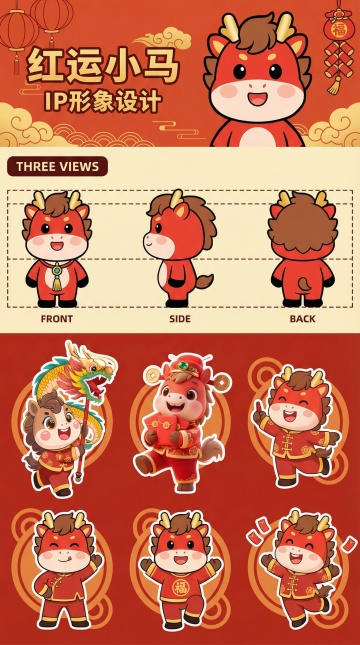 可爱卡通国潮风,拟人化角色融入中式元素,展现传统与现代的创意融合。