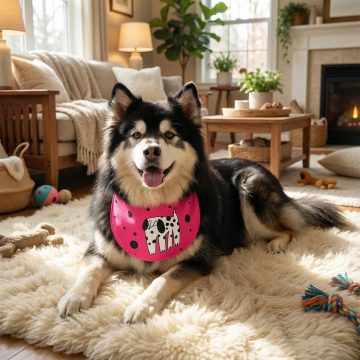 帮我生成给泰迪狗洗澡的场景图,狗狗表情愉快,头上有泡沫,狗狗坐在浴缸里身上的淋湿,旁边装有花洒套装,背景是浴室白色瓷砖,宜家风格