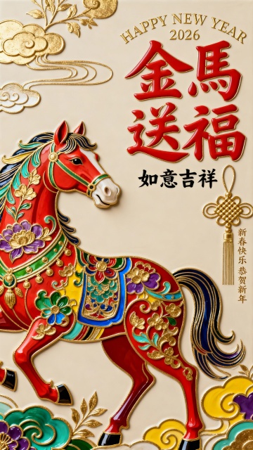 国潮风微缩艺术,鎏金浮雕建筑与人物生动呈现中式古典年味,喜庆红金配色营造浓厚节日氛围。