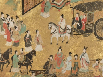 古典中式插画,国潮风唯美感,优雅文艺,水墨鎏金,人物雅集,意境深远。