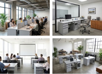 现代简约办公室,性冷淡风设计,大面积窗户引入自然光,营造清爽舒适的办公环境。