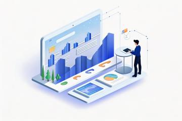 3D风格的宣传界面,画面的主体居左,主体是一个带有图表、数据模块等元素的白色立体分层面板,周围漂浮着蓝色统计图表形状物件,玻璃磨砂质感。画面右侧留白。整体色调以白色为底,搭配蓝色元素,背景是炫彩浅蓝色,呈现出简洁、现代、科技感的视觉效果