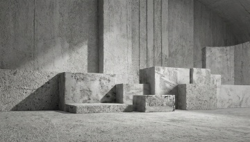 一张写实摄影风格的建筑场景照片,采用低角度仰拍构图,画面下方是具有自然石材纹理、接缝清晰的灰色调地面,地面向远处延伸汇聚于地平线;上方是广阔的天空,由下至上呈现从浅蓝到深蓝的渐变,点缀着几缕轻薄的白色云彩,整体光影柔和,光线均匀洒落在地面形成细腻的反光,营造出开阔、宁静、现代的氛围。