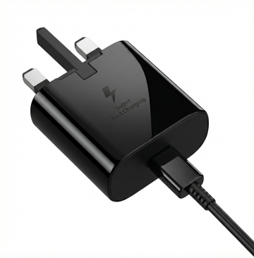 赛博朋克风格的智能手机充电场景,霓虹蓝与紫色渐变光效笼罩,手机屏幕显示动态赛博数据流图案,充电器和数据线呈现金属质感与霓虹灯带装饰,白色桌面转化为带有电路纹理的黑色高科技平台,背景墙变为布满全息投影广告和管线的未来都市夜景,整体光影对比强烈,充满未来科技感与机械美学,高细节,8K渲染,电影级构图