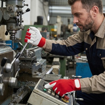 保持手套细节不变,分清正反面,一个外国帅哥穿着这双手套在修汽车