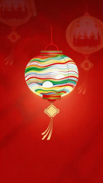 鎏金灯笼悬于渐变红背景,融合扁平与轻拟物设计,点缀星形与烟花元素,尽显中式喜庆氛围。