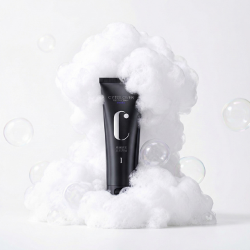 3D轻拟物风格,简约主义设计,清透泡沫粒子环绕洁面乳,营造清新柔和的视觉感受,传递清爽舒适的护肤体验。