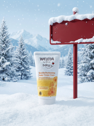 清透玻璃瓶身融合金属质感,置于雪域冰晶间,3D渲染呈现虚拟自然的清爽科技美学,未来感十足。