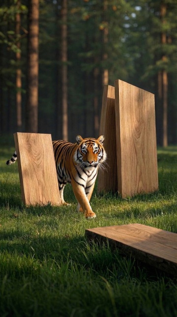 俯视角构图,晨曦穿透古老温带雨林的多层冠盖,形成数十道直径不等的金色丁达尔光束,精准照亮正在缓慢旋转的翡翠色枫叶群与覆盖着孔雀石光泽的湿滑青苔,深松绿与柠檬黄在光束中形成光谱渐变,前景蕨类植物的露珠折射出微型彩虹,中景三人合抱的榉树树干布满深绿色苔藓与寄生兰,背景乳白色晨雾中隐约可见倒伏的古木轮廓,地面腐殖质上散落着去年的橡果与昆虫蜕壳,8K超写实细节捕捉每片叶子的叶脉纹理与光束中的尘埃运动,温暖的侧逆光在苔藓表面形成1:3的光影分割比,整体氛围如同被时光遗忘的秘密花园。