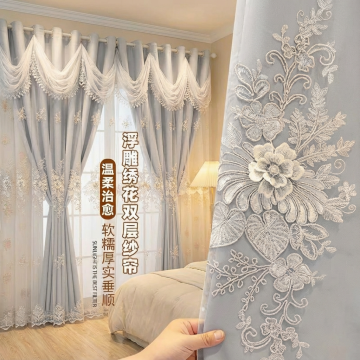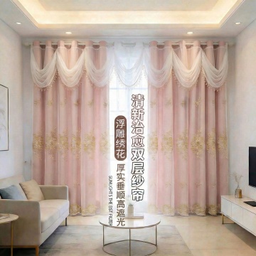 保持窗帘的面料和花纹不变,把室内家居场景换成奶油风