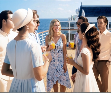 一艘造型流畅的豪华游艇在碧蓝的海面上高速行驶,船身线条经过重新设计,呈现出更具未来感的流线型轮廓,白色的上层建筑搭配深蓝色的船体,在明亮的阳光下闪耀着金属般的光泽,船尾激起巨大的白色浪花,形成优美的尾迹,甲板上有几个人正在享受航行的乐趣,远处是连绵的山脉和海岸线,天空晴朗无云,整体画面呈现出高端、奢华、动感的氛围,具有极高的摄影写实度,光影效果自然,海水的质感清澈透明,波光粼粼。