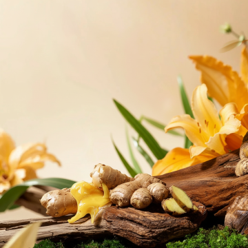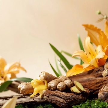 一张具有高度写实摄影风格的中药主题海报,主色调为温暖的棕黄色和土褐色,营造出古朴、自然、沉静的氛围。画面采用柔和的侧逆光,光线从左上方照射,在主体中药上形成明显的高光和细腻的阴影,增强立体感和质感。构图遵循三分法,主要物体集中在画面偏下位置,背景有浅景深的模糊处理。主体为一株完整的、形态饱满的人参,带有长长的须根,放置在一块粗糙的木质树桩切片上,树桩旁有一根横向的枯木枝干。人参旁边散落着几片切好的黄色药材薄片,一小撮干燥的绿色草药,以及一张泛黄的、上面有模糊文字的古老纸张,纸张上也放置了少量药材。背景替换为云雾缭绕的远山,山峰轮廓柔和,呈现出淡褐色调,与前景的中药元素和谐统一,整体画面质感细腻,细节丰富,光影过渡自然,传递出传统中医药的深厚底蕴与自然草本的纯净感。
