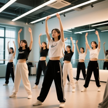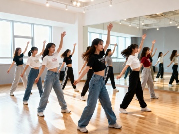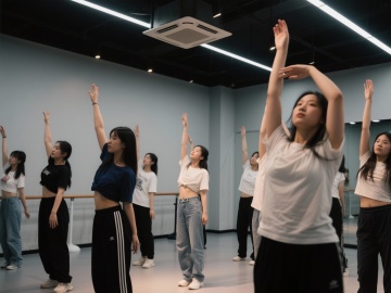 在一间舞蹈室里,一个女老师咋正在女孩的动作特写
