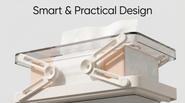 一个明亮整洁的现代厨房,采用简约优雅的设计风格,以白色为主色调,搭配黄铜色金属装饰细节。厨房整体呈现出温馨舒适的氛围,阳光透过百叶窗洒入,在白色橱柜和大理石台面上形成柔和的光影效果。白色的橱柜带有黄铜色的圆形拉手,上方的吊柜和下方的地柜组合提供了充足的储物空间。大理石台面光滑洁净,带有自然的灰色纹理。台面上有一个双槽不锈钢水槽,搭配黄铜色的水龙头。水槽旁边的金属桶里插着木质的锅铲和汤勺。墙面安装着黄铜色的挂杆,上面挂着各种木质和金属材质的厨房用具,包括勺子、铲子等。挂杆上方的白色搁板上摆放着不锈钢和玻璃材质的储物罐,里面装着各种香料和食材。台面上还摆放着一个白色的盘子,里面放着几块叠在一起的三明治,旁边还有一盘色彩鲜艳的沙拉。整体构图采用了三分法,光线从左侧窗户进入,营造出明亮通透的感觉,细节丰富,质感细腻,展现出干净利落的现代厨房设计感。