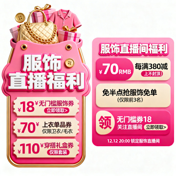 3D重拟物风格,鎏金金属质感,红金配色营造喜庆促销氛围,突出直播间福利与限时优惠,视觉冲击力强。