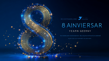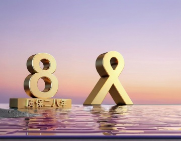 未来感与科技感交织的3D数字“8”,鎏金粒子环绕,光影流动,营造梦幻奢华的虚拟现实氛围,象征八周年庆典的超级符号风设计。