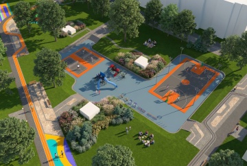 中景仰拍视角,现代风格校园建筑群沐浴在清晨金色阳光中,主体为红砖钟楼式教学楼主楼与红砖连廊式教学楼组合,左侧配银灰色金属质感实验楼,白色校门位于中央广场,门前有几何形绿化带、成排梧桐树及石板道路,天空湛蓝点缀絮状白云,阳光透过树叶形成斑驳光影,地面有黄色校车、骑行学生及步行师生,钟楼顶部时钟指向8:00,教学楼玻璃幕墙反射着天空与树木,建筑细节包括红砖砌法纹理、金属窗框线条和浮雕校徽,色彩以砖红色与灰白色为主调,点缀绿色植物,构图采用三分法,前景有晨读学生剪影,中景建筑群形成明确透视,背景是城市天际线,整体呈现明快而庄重的学术氛围,写实主义风格,空间纵深感强烈。