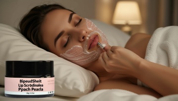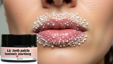 以图中的唇部磨砂膏为元素,欧美女人使用唇部磨砂膏,去除嘴部死皮,滋养润唇,保湿,设计6张跟唇部磨砂膏有关的图,物体主体特征不变,西班牙语,比例 「16:9」