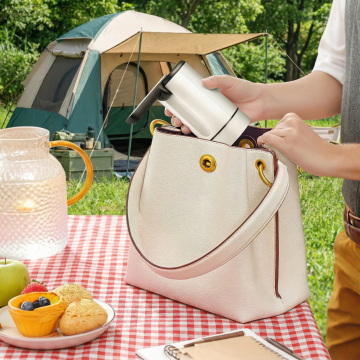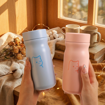 清新自然的户外场景中,四款简约金属质感保温杯以性冷淡风与轻拟物设计呈现,柔和色调搭配实景光影,传递舒适与高级感。