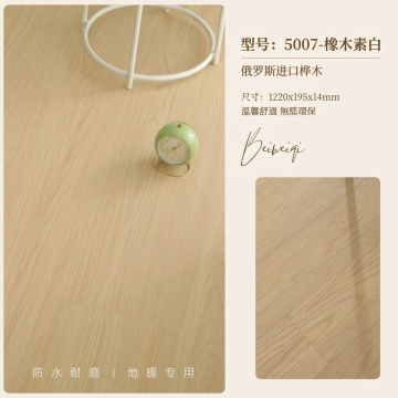 高仿真木地板材质背景,浅橡木色调,长条形地板呈人字形交错拼接,表面有清晰自然的木纹肌理,包括细密的导管纹和山形纹理,整体色调统一为温暖的浅米色至浅棕色渐变,光线均匀柔和,呈现出哑光至半哑光的细腻质感,无明显反光,接缝处处理精细自然,营造出干净、简约、自然的空间氛围。
