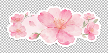 水彩风格插画,整体呈现柔和透明的晕染质感,以右下侧为视觉焦点,几朵盛开的樱花和散落的花瓣构成自然的弧形构图,花瓣边缘有细腻的水彩笔触纹理,色彩由中心向边缘自然渐变,背景为纯净的白色负空间,营造出轻盈、浪漫、清新的氛围,光影柔和,无明显阴影,仅有花瓣本身的色彩浓淡变化形成微妙层次。