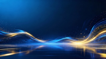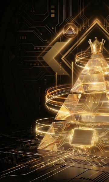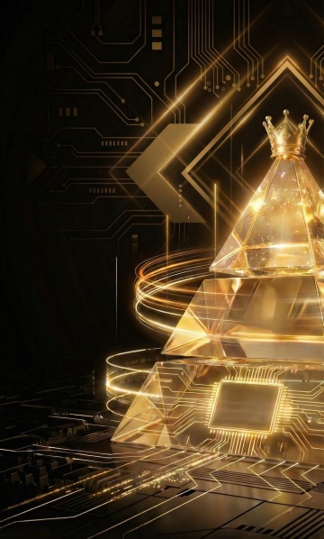 深邃的黑色背景,中央区域有一个明亮的金色光点作为光源,向四周散发柔和的光芒。画面中分布着许多金色的立体几何图形,这些图形呈现出不同的角度和大小,有的向上延伸,有的向两侧展开,形成一种空间感和层次感。金色的线条勾勒出几何图形的轮廓,边缘光滑且具有金属光泽。背景中还点缀着许多细小的金色光斑,如同星尘般散布在黑色的空间中,营造出一种华丽而神秘的氛围。整体画面色彩对比强烈,金色的元素在黑色的背景上显得格外耀眼,给人一种高端、大气的视觉感受。