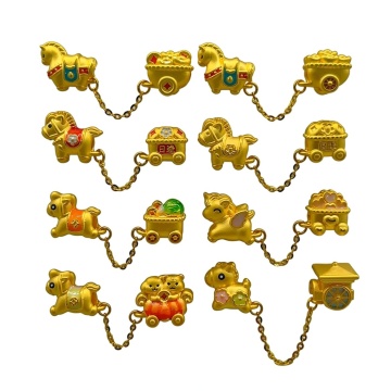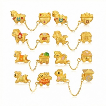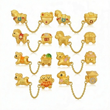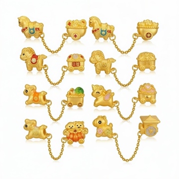 6个不同样式的金色传统中式招财元素,包括元宝、金锭、铜钱、玉佩、摇钱树、聚宝盆,每个元素均采用高光泽金属质感3D渲染,表面有细腻的光影过渡和反光效果,统一金色调,放置于纯白色纯色背景上,6个元素呈2行3列规整排布,整体风格保持一致的写实3D风格和财富主题