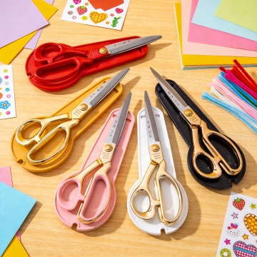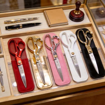 六把不同造型的剪刀工具产品集合,每把剪刀保持金属刀刃与黑色塑料手柄的材质特征,造型分别为:经典对称圆柄剪刀、流线型 ergonomic 人体工学手柄剪刀、带弹簧助力的裁缝剪刀、刀刃微弯的园艺修枝剪刀、小型尖头文具剪刀、复古风格铆钉装饰剪刀,纯色背景(每把剪刀可分配不同纯色背景如红、蓝、黄、绿、紫、橙以区分),高清晰产品摄影风格,柔和均匀的顶光照明,金属刀刃有细微反光,阴影浅淡均匀,剪刀主体居中,六把剪刀呈2x3网格规整排布,整体画面干净简洁,突出工具的功能性与设计细节。