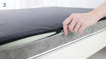 一张温馨的卧室场景,中央是一张铺着棕色床垫的床,床垫表面柔软舒适,带有自然的纹理。阳光透过窗户洒在床垫上,形成温暖的光斑。床头柜上摆放着一盏柔和的台灯和一盆绿色植物,整体色调温暖柔和,营造出舒适、放松的居家氛围。