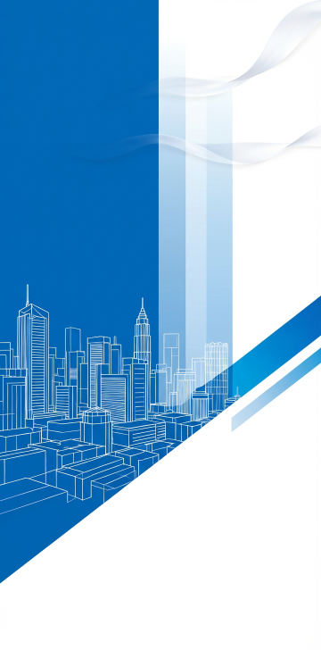 现代简约风格的城市建筑风光,采用与原图相同的细腻纹理、流畅线条和纯净质感,整体配色改为深蓝色与灰色的渐变组合,营造出沉稳而富有科技感的视觉效果,画面保持简洁大气的设计感,没有任何文字或标识元素。