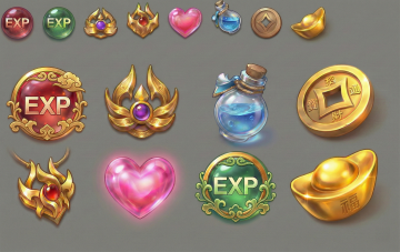 奢华感与梦幻感交织,鎏金风与金属风碰撞,3D重拟物设计凸显体积感,光影细腻,插画风元素融入游戏道具,呈现东方古典美学。