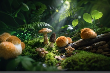 写实风格的高细节灵芝特写,主体为多层叠生的灵芝,菌盖呈现红棕色至橙黄色的渐变,边缘有清晰的亮黄色环带,表面光滑有细微纹理和自然光泽,菌柄粗壮呈深褐色,生长在覆盖着鲜绿色苔藓的湿润基质上,采用柔和的侧光照明,营造出温润自然的氛围,背景虚化处理以突出主体,变换为雨后清晨的天气环境,空气中弥漫着淡淡的雾气,灵芝表面凝结着晶莹的水珠,苔藓更加鲜绿湿润,整体色调保持温暖自然,画面质感细腻,光影过渡柔和,保留原有的构图视角和主体清晰度。