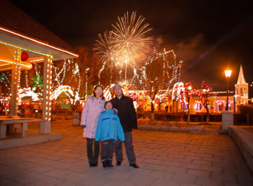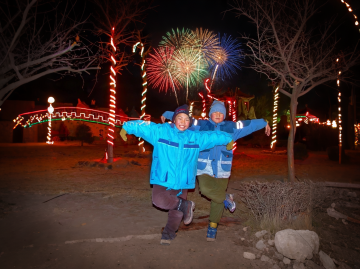 以超写实、超细致的16K单反质量修复照片。修复划痕、撕裂、噪点和模糊。保持自然肤色的同时增强鲜艳色彩。完美锐化、头发和衣服细节。增添逼真光影。专业级PS后期处理。高动态范围,超高清,逼真纹理,电影般仕后,清晰干净背景,完全还原和提升原照片。改善人物表情,提高面部亮度,改善背景夜色效果变暖调,去掉路人,空中增加焰火