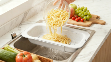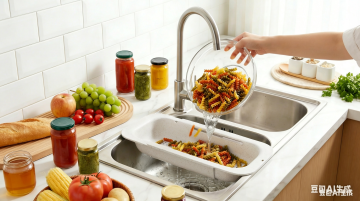 维持场景和灰色沥水篮产品主体不变,将水槽改为银色不锈钢水槽