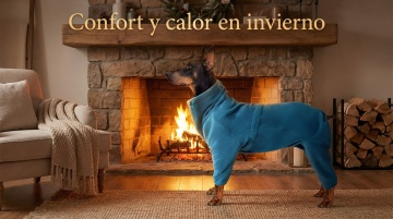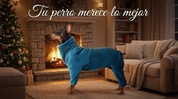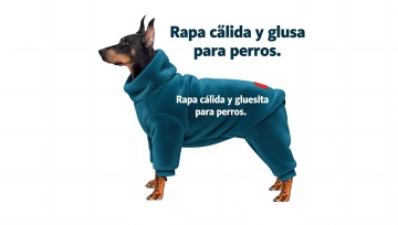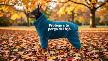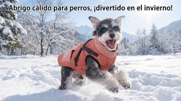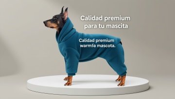 以图中的狗狗衣服为元素,加厚保暖,设计6张跟狗狗衣服有关的图,物体主体特征不变,西班牙语,比例 「16:9」