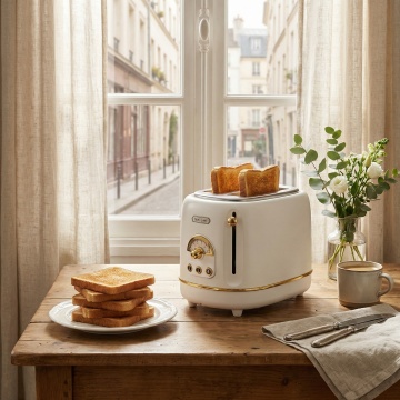用这张白底图产品,创作出一组15张的统一风格色调的场景图,白底图中的产品要一比一百分百精准还原保持不变,与图片中的物品比例要协调,而且产品要放上吐司,产品旁边有一碟烤好的吐司,每一张图都要生成一张不同场景图,不同角度,产品摆放和陈列都可以随意摆放和搭配,法式ins简约风格,构图比例大小合理,图片格式要2000*2000像素产品主图