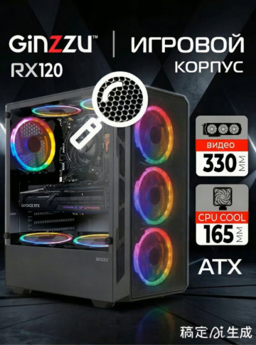 科技感十足的3D风电脑主机,霓虹灯与粒子光效交织,置于雪山冰块间,光影梦幻,虚拟现实感强烈,酷炫未来感拉满。