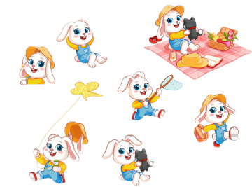 戴草帽的可以让小兔子的耳朵往下耷拉下来,要看的见耳朵