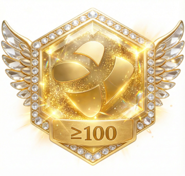 幻想卡通风徽章,圆形紫色渐变徽章,中心紫粉渐变多角星形,宽大分层翅膀带细闪和钻石点缀;风格较上一版增加金属齿轮边框,钻石改为水滴形切割并带动态流光