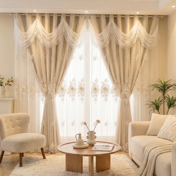 保持窗帘的面料和花纹不变,把室内家居场景换成奶油风卧室
