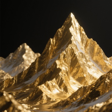 深邃的黑色背景,中央区域有一个明亮的金色光点作为光源,向四周散发柔和的光芒。画面中分布着许多金色的立体几何图形,这些图形呈现出不同的角度和大小,有的向上延伸,有的向两侧展开,形成一种空间感和层次感。金色的线条勾勒出几何图形的轮廓,边缘光滑且具有金属光泽。背景中还点缀着许多细小的金色光斑,如同星尘般散布在黑色的空间中,营造出一种华丽而神秘的氛围。整体画面色彩对比强烈,金色的元素在黑色的背景上显得格外耀眼,给人一种高端、大气的视觉感受。