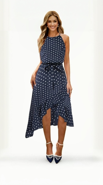 欧美女生穿着这件连衣裙 跟朋友在游轮上手拿果汁 独家游玩 面带微笑 身高一定要跟背景其他人一样高