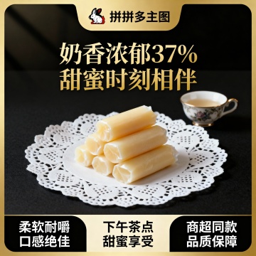这张图片是产品主体这款产品是上海冠生园大白兔奶糖 我需要设计20张主图在拼多多上面售卖 主图场景布局可以用 等设计一个高级一些主图文案内容 甄选内蒙古黄金奶源带的优质鲜奶 奶香浓度比普通奶粉高出37% 童年记忆 经典零食 过年必备 商超同款 多种口味 奶香浓郁 奶香浓郁解馋 柔软耐嚼 优质奶源 传统工艺 过年首选