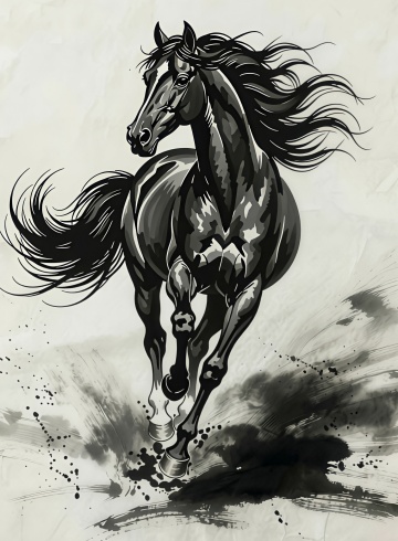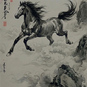 水墨风骏马奔腾,鎏金祥云点缀,红韵飘逸,工笔细腻,尽显国潮古典之美,寓意吉祥如意。